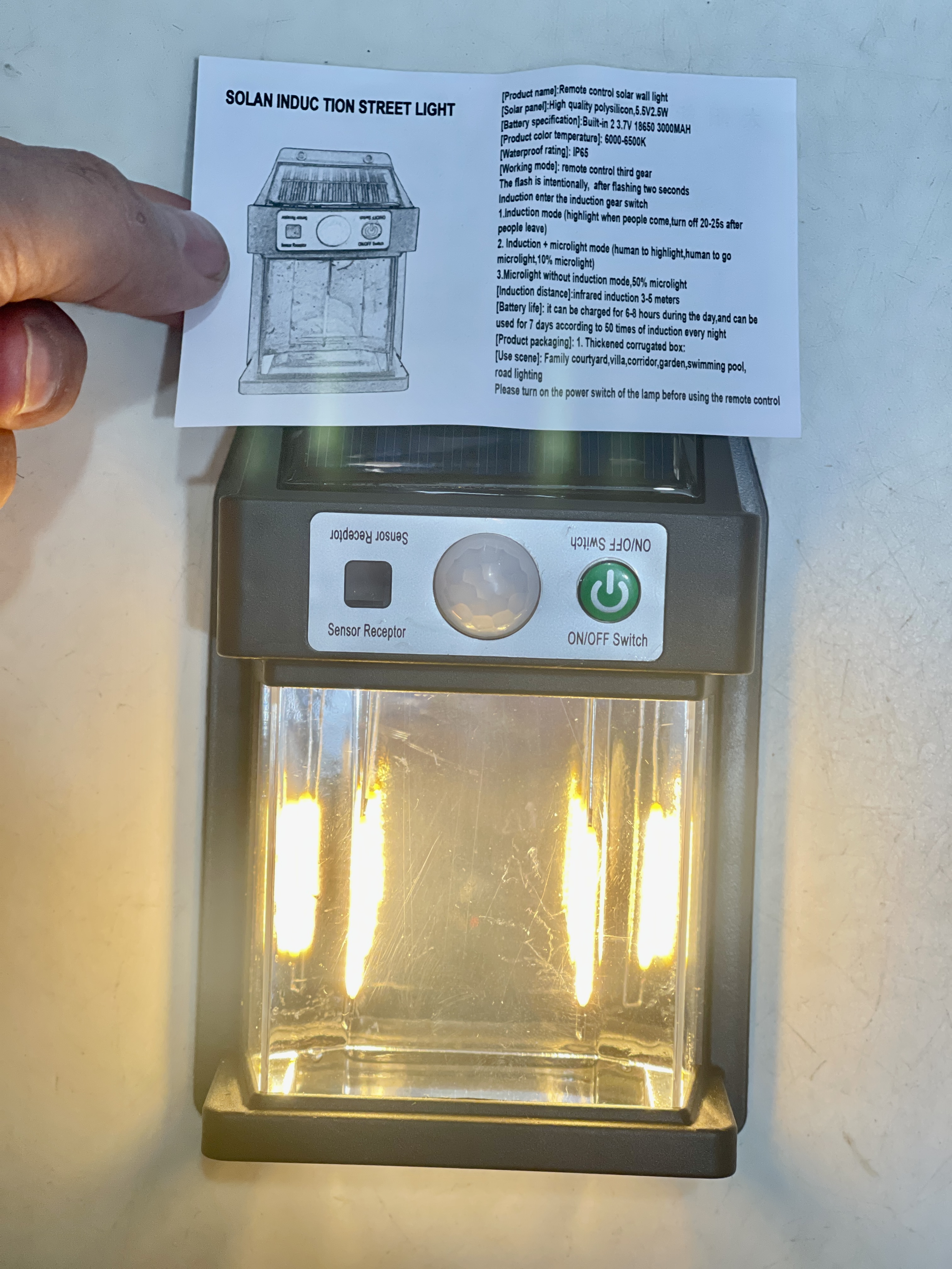 وقتی کسی نمی آید کم نور است. وقتی کسی نزدیک می شود ، نور قوی را حس می کند. چراغ به طور خودکار به مدت 30 ثانیه خاموش می شود.