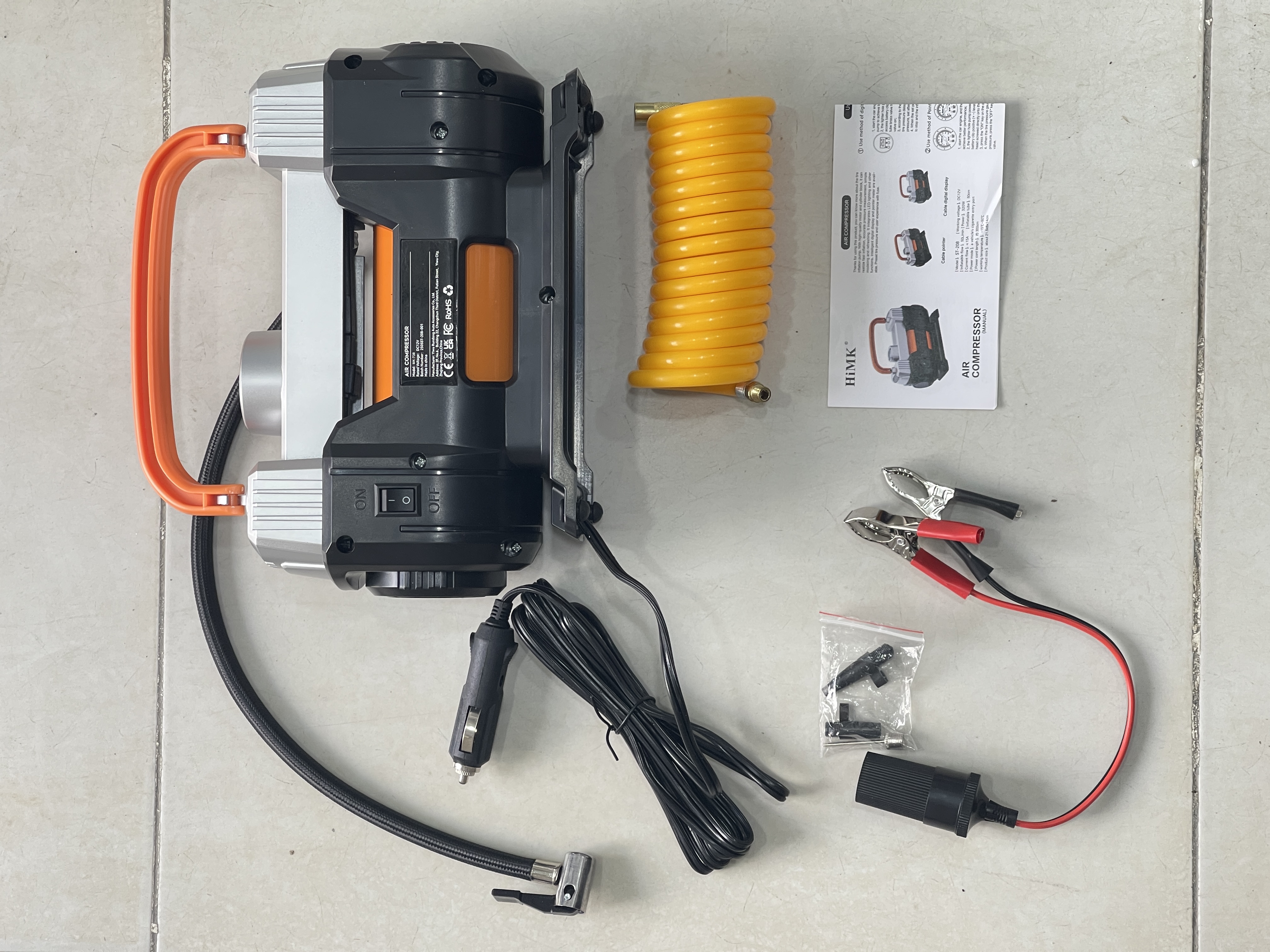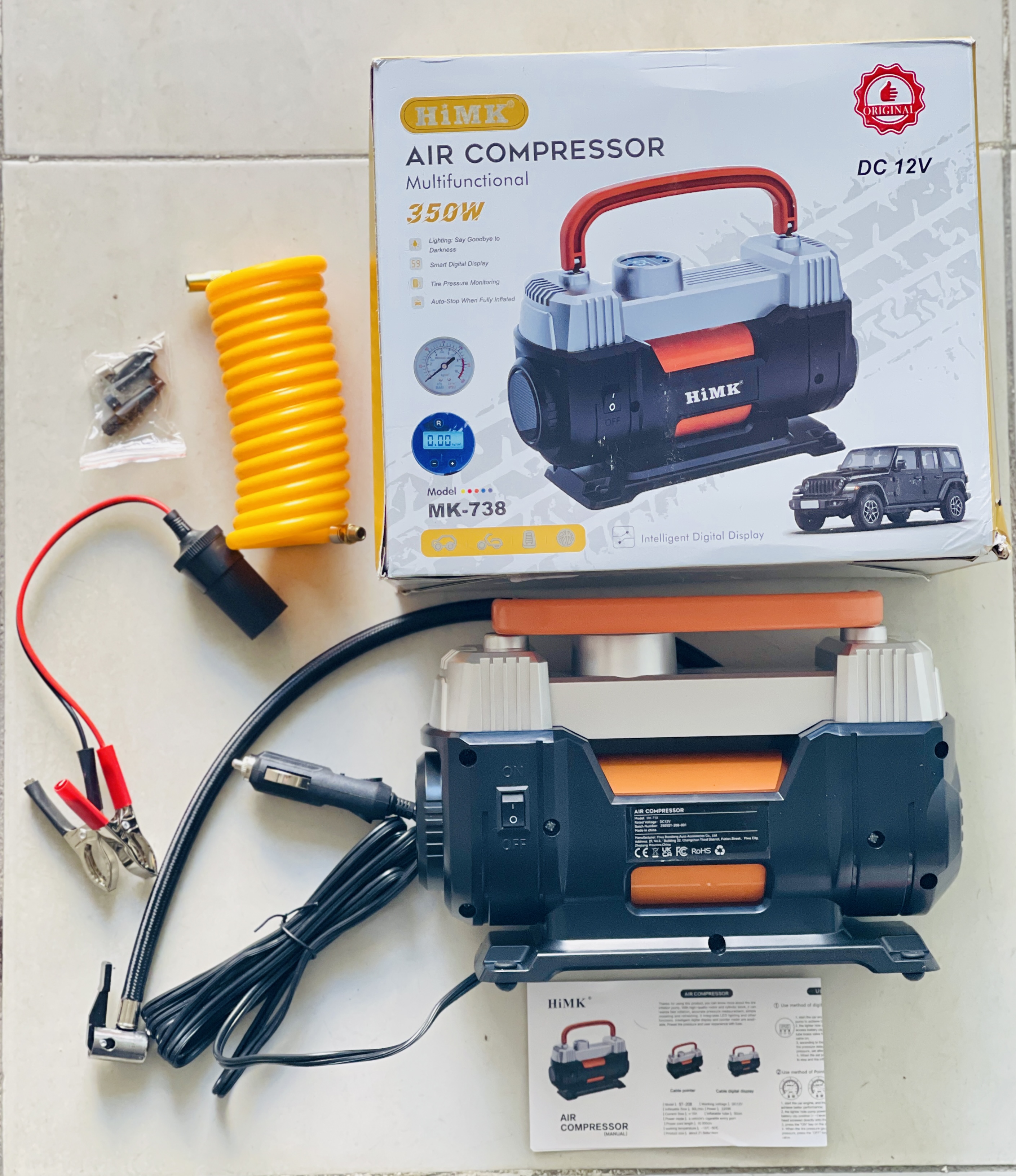 پمپ باد دو سیلندره دو موتوره با صفحه نمایش دیجیتال مخصوص انواع ماشین و موتورسیکلت و دوچرخه ارسال سریع اورجینال بانه گجت