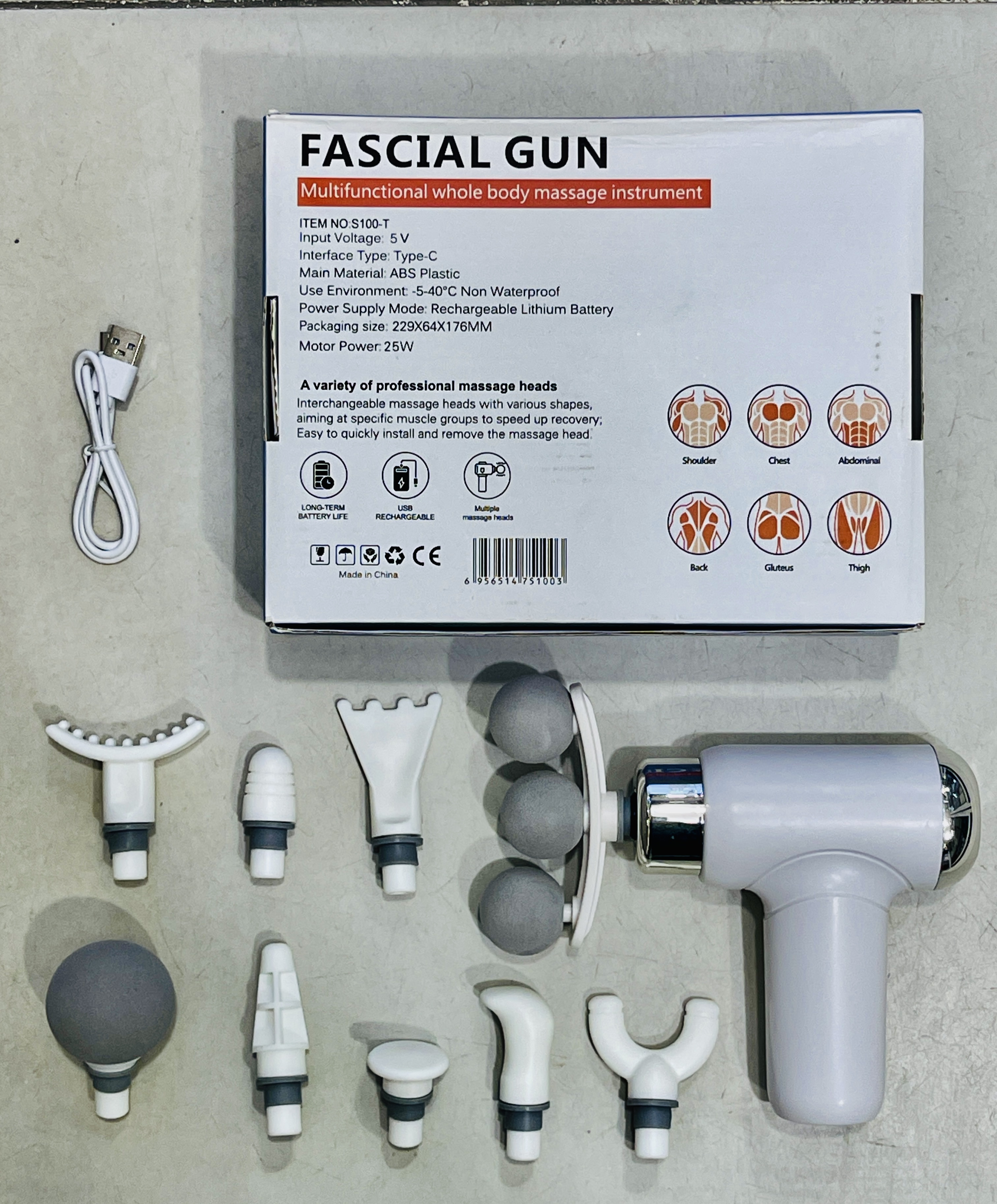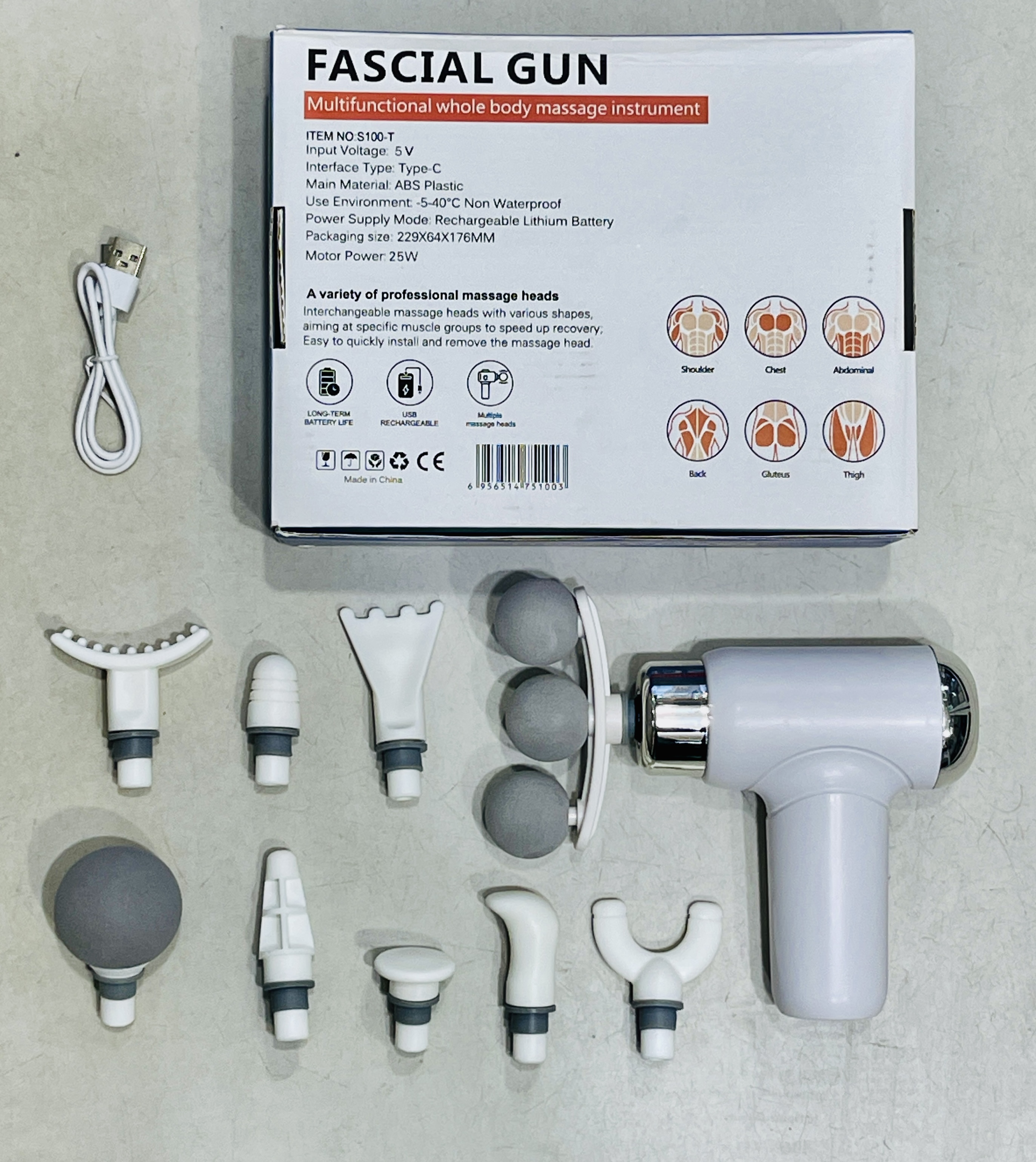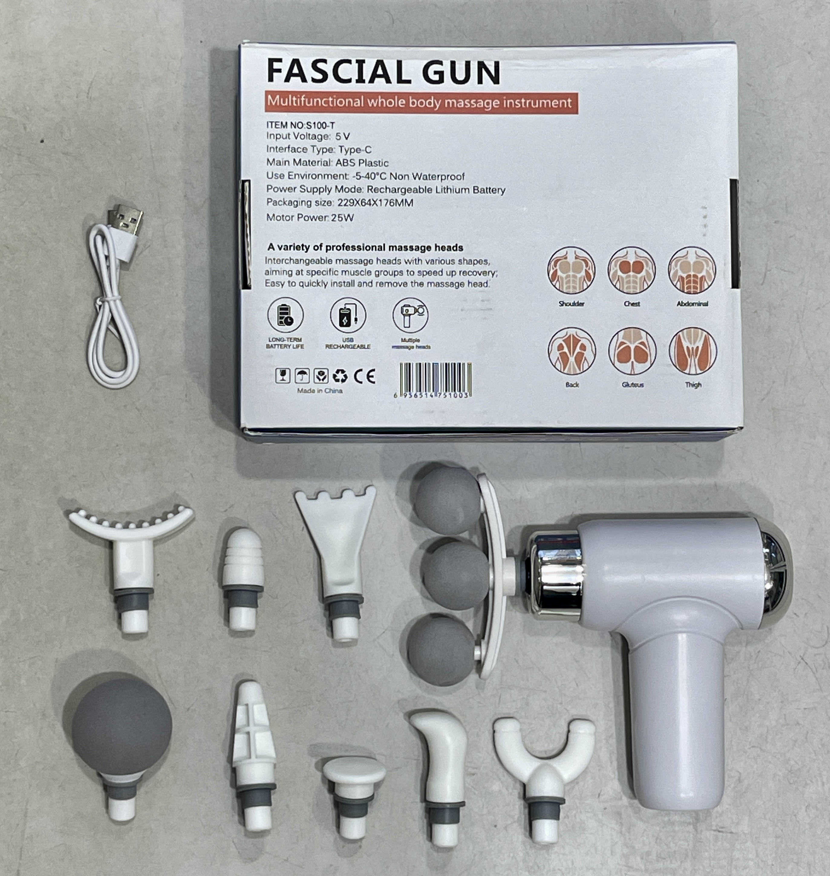 سرهای ماساژ قابل تعویض با اشکال مختلف ، هدف از گروه های عضلانی خاص برای سرعت بخشیدن به بهبودی. آسان برای نصب و حذف سریع سر ماساژ.